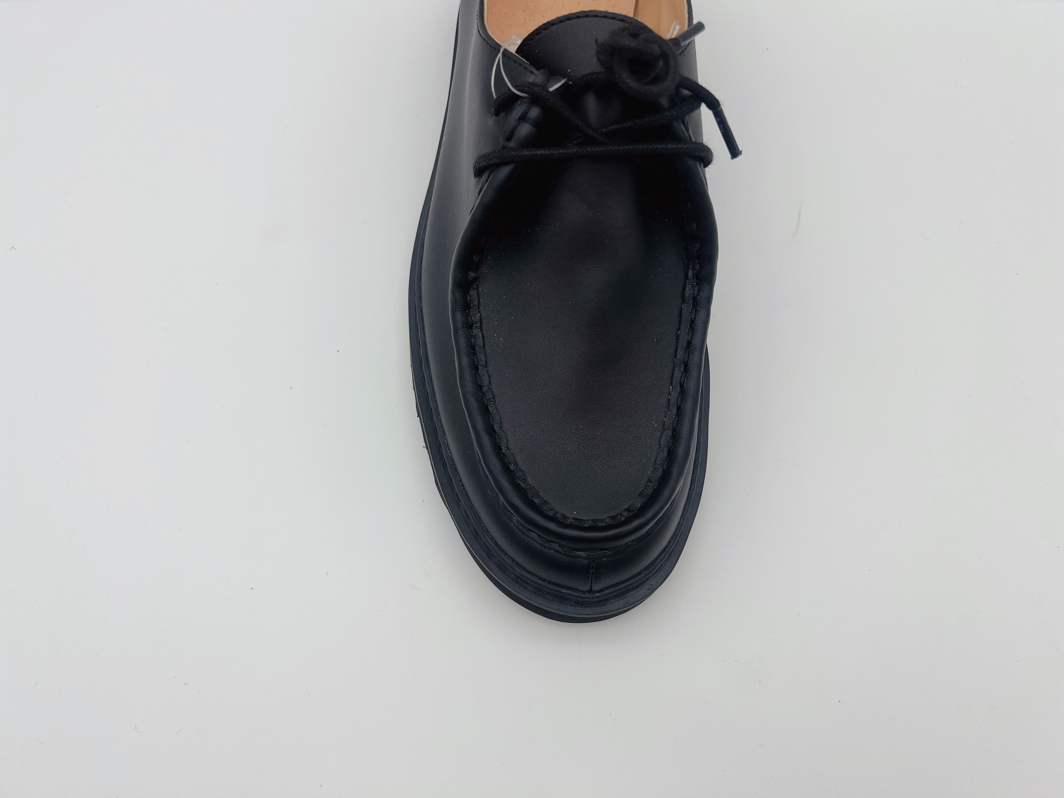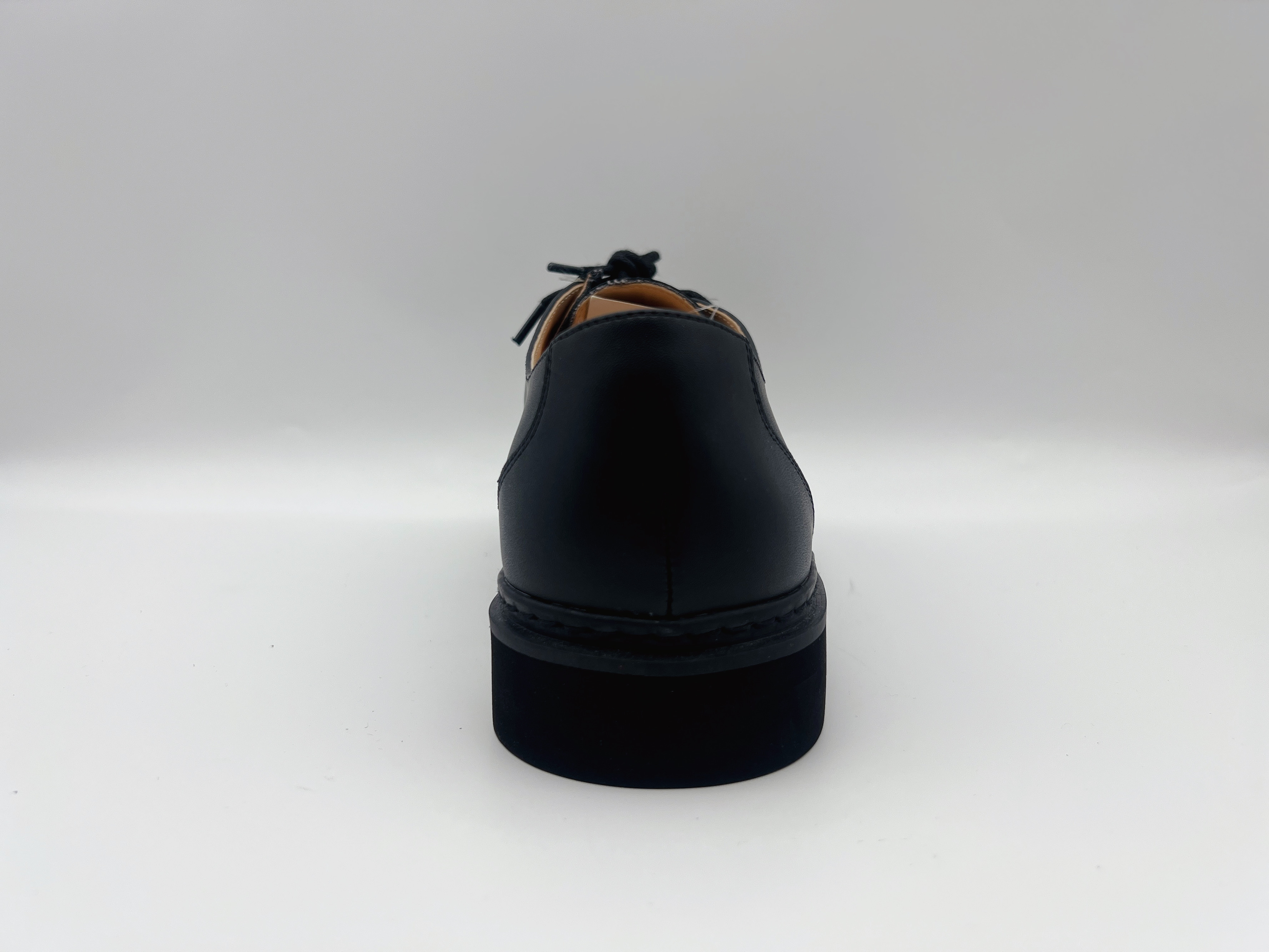 Soft cowhide waterproof and non slip work shoes, black flat shoes with 3cm comfortable rubber outsole
